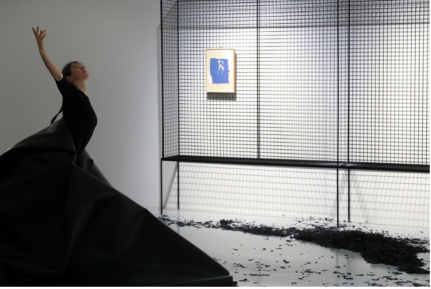 L'interprète émerge d'un ilot de neige noire. Sa danse fait évoluer la scénographie, laisse sur le sol blanc les traces de son mouvement, de son passage, de son évolution. A mesure qu'elle progresse elle transforme son paysage (intérieur). Le rythme lent, presque hypnotique, est soutenu par l'univers musical. La lumière vient effleurer la scène avec subtilité et participe pleinement à la narration, soulignant un détail ou focalisant le regard. Cette pièce crée un espace privilégié pour les spectateurs, les invitant à un voyage méditatif hors des repères du temps.
