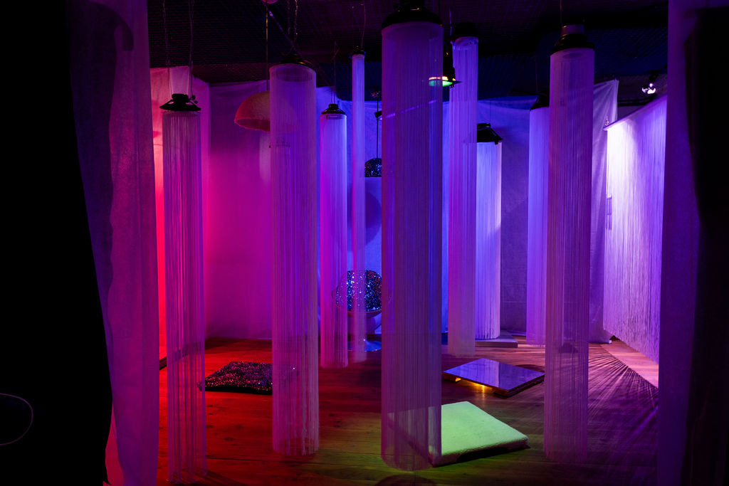 Toutes en rondeurs ces deux lettres sont une représentation graphique des oscillations de cette famille de méduses qui vous accueillent pour une immersion sensorielle à base d’ondes sonores.